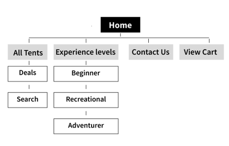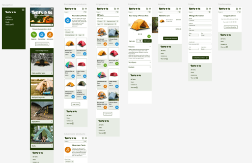 I started by laying out a user-focused navigation that would not overwhelm hinder the flow and allow the user to successfully complete their objective of purchasing a tent.