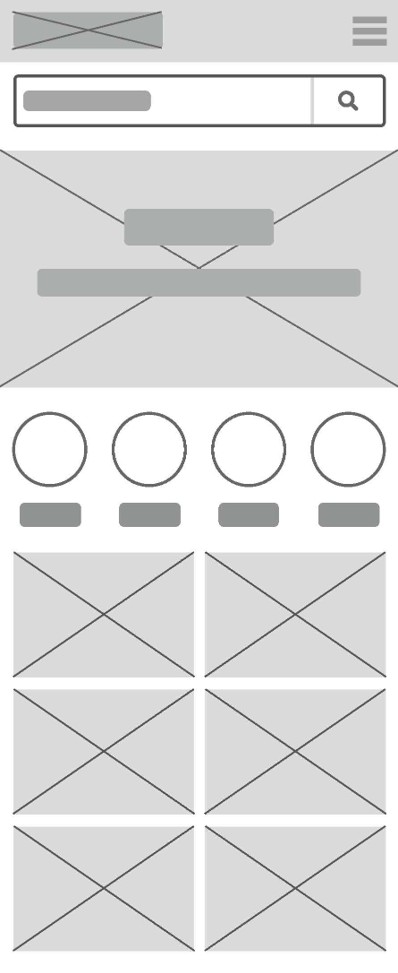 Using wireframes, I translated my paper sketches to a more structured digital format. I incorporated categories on the homepage that would tie directly to product pages. These categories would help to further organize the site and create a more user-centered navigation system.